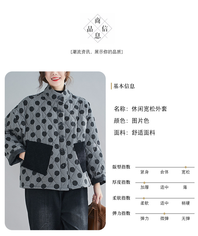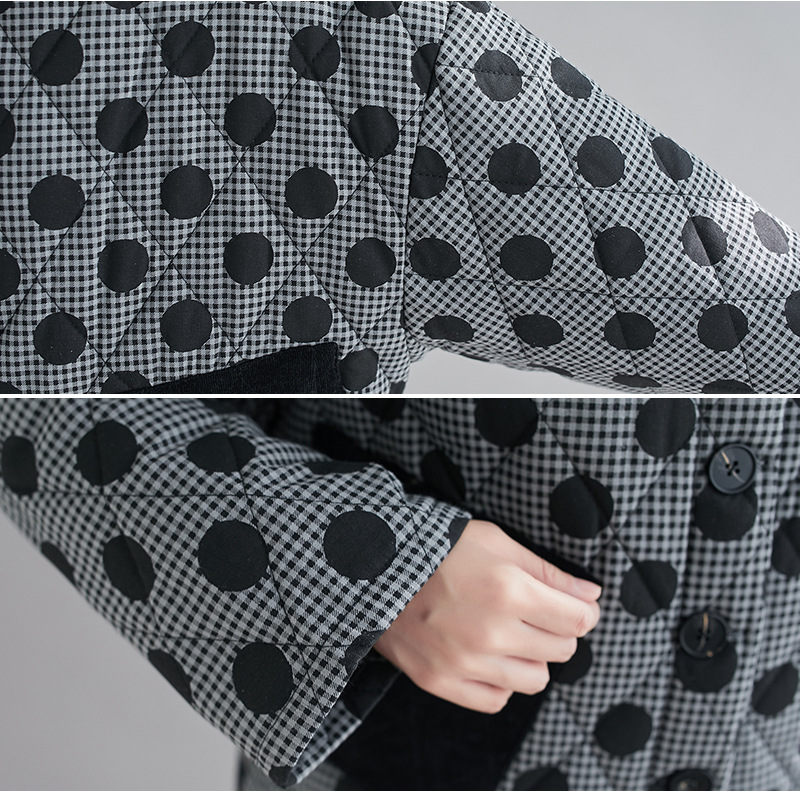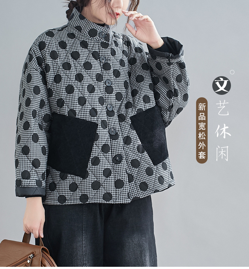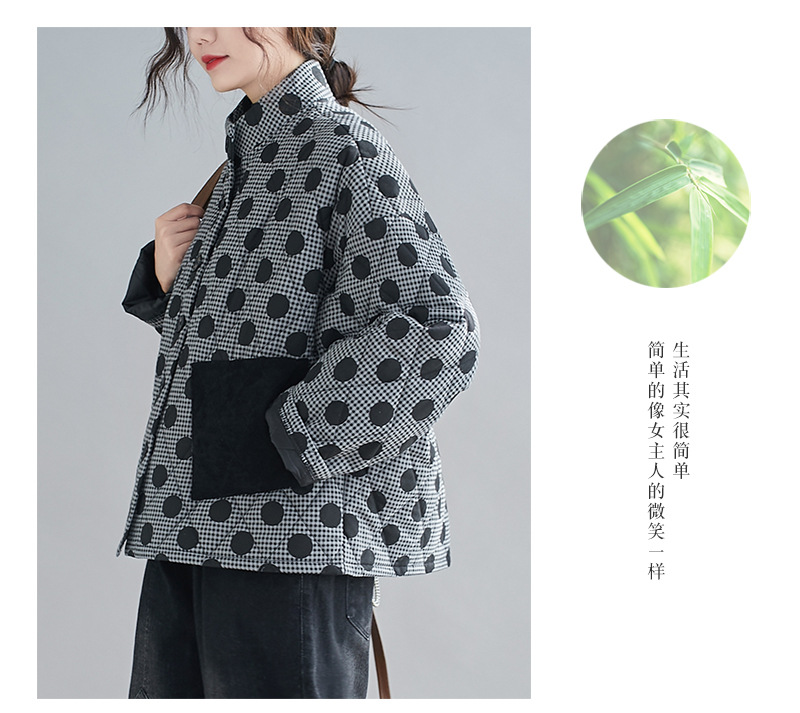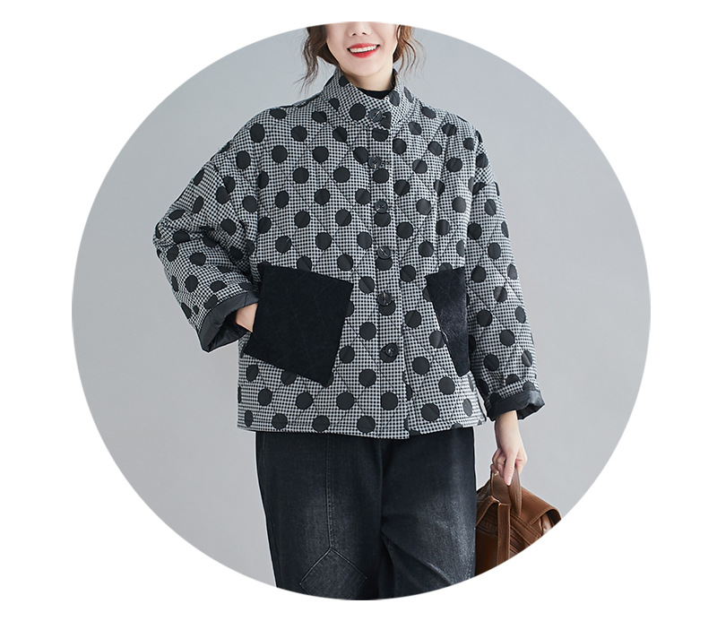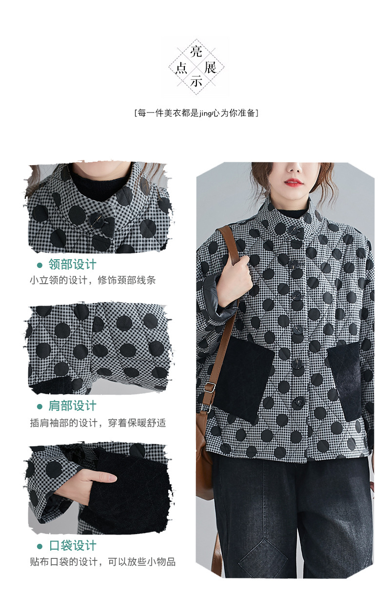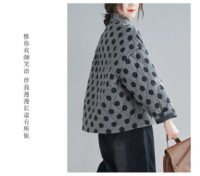 复古文艺菱格夹棉棉服女短款减龄妈妈棉袄圆点小棉衣夹棉外套上衣