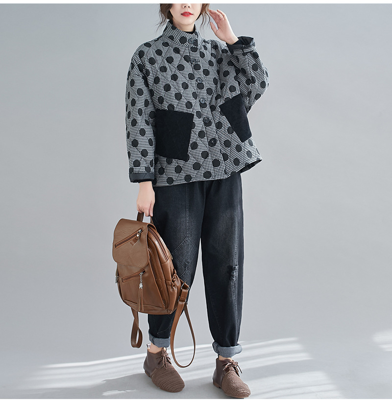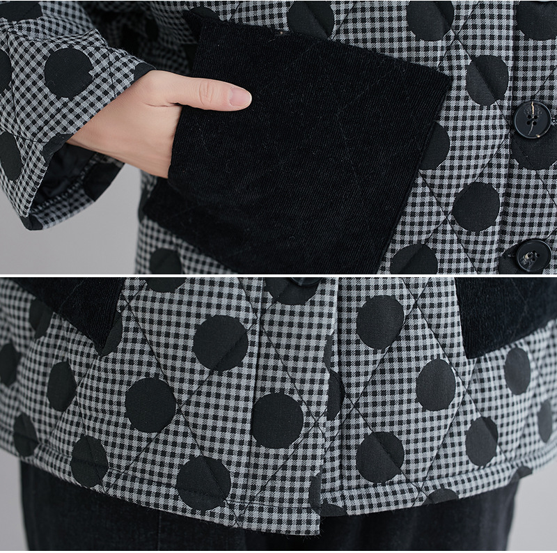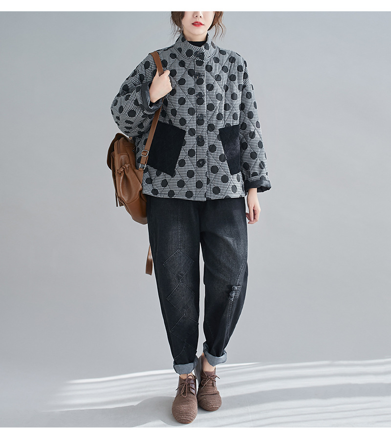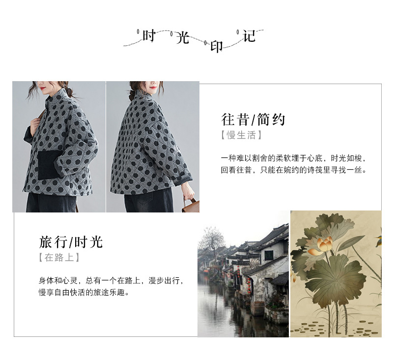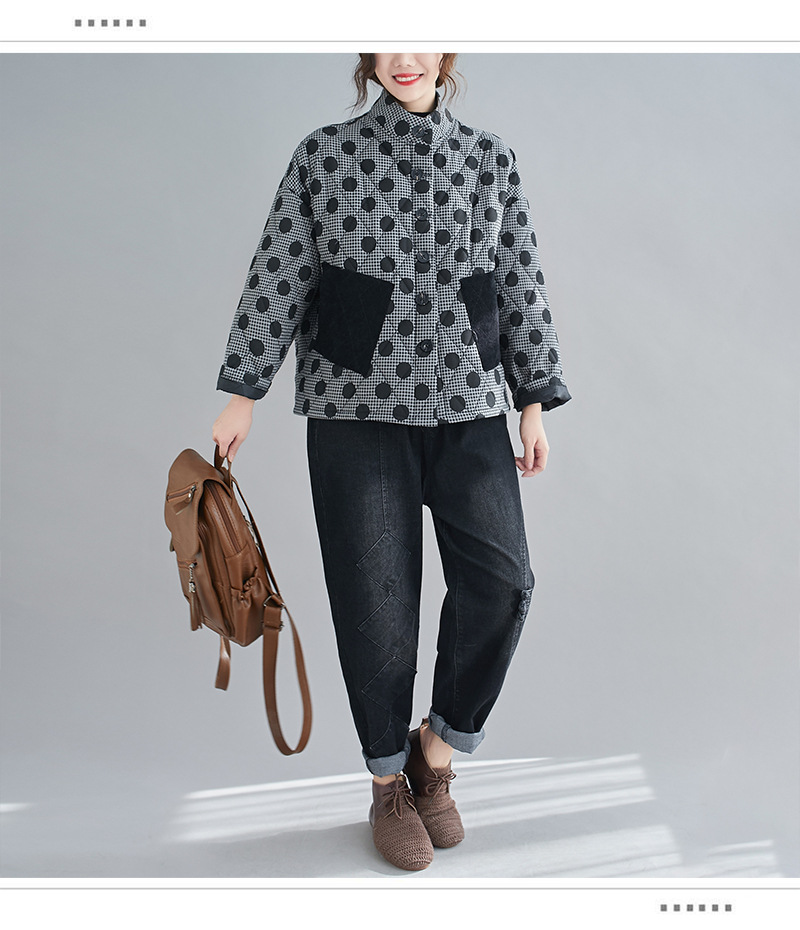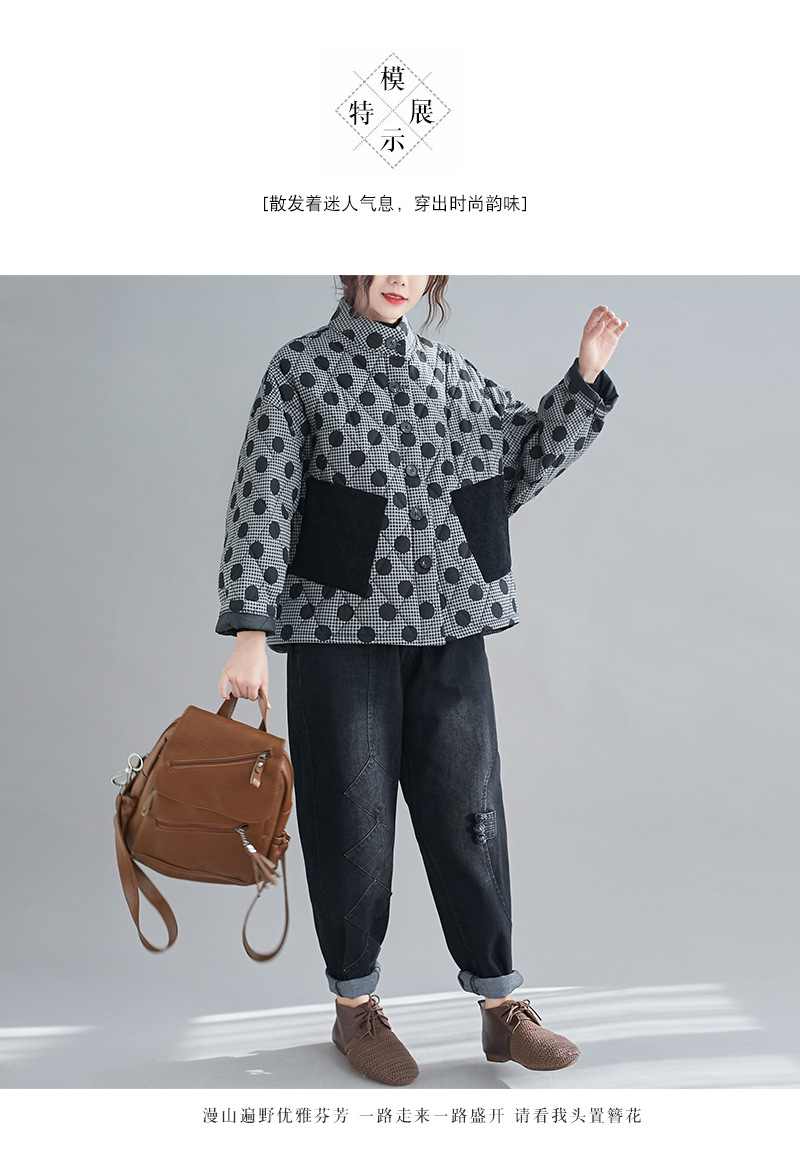 复古文艺菱格夹棉棉服女短款减龄妈妈棉袄圆点小棉衣夹棉外套上衣