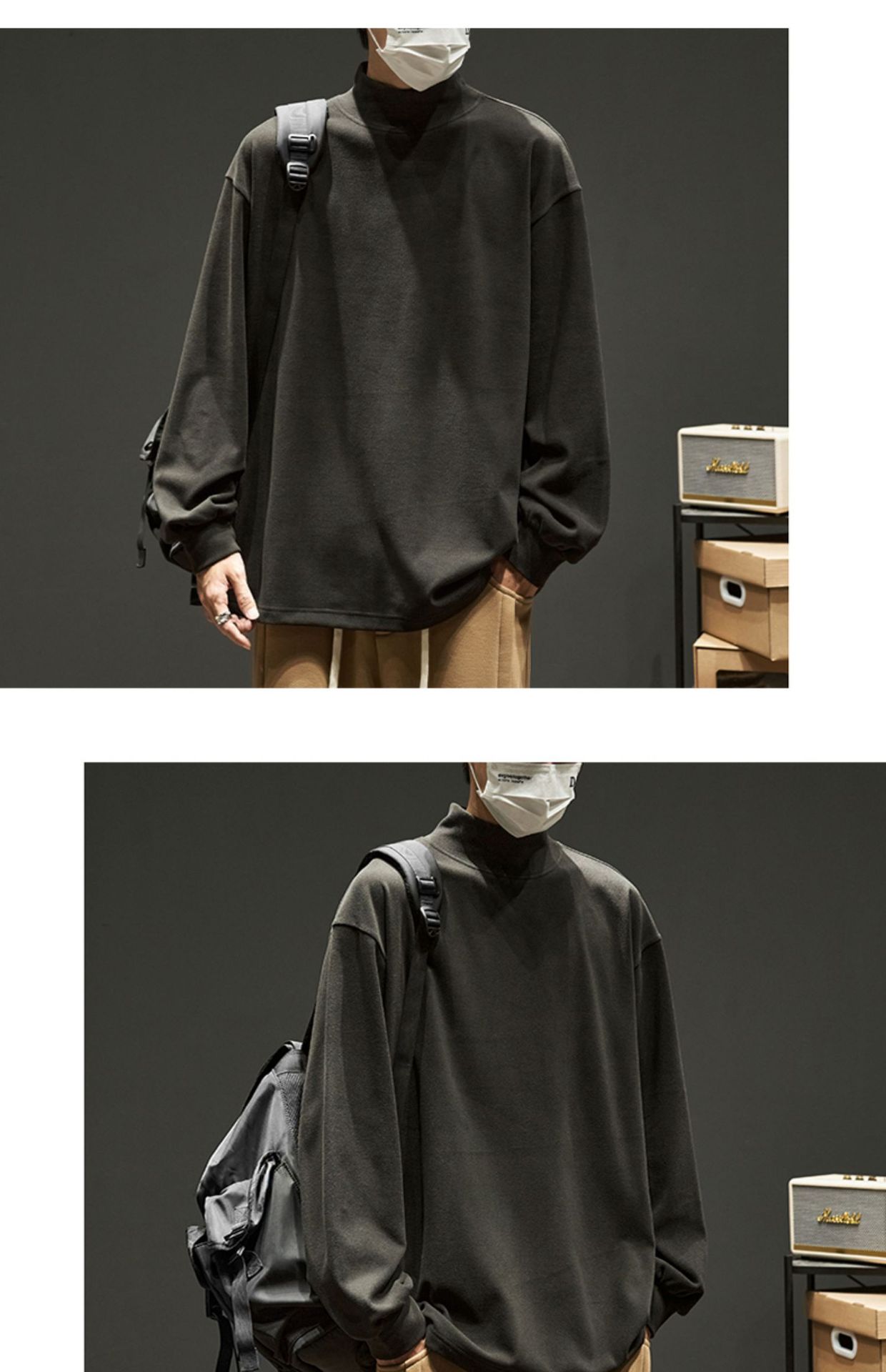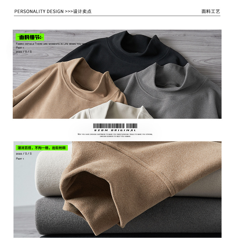 德绒打底衫男款加绒半高领长袖t恤男生内搭衣服秋
