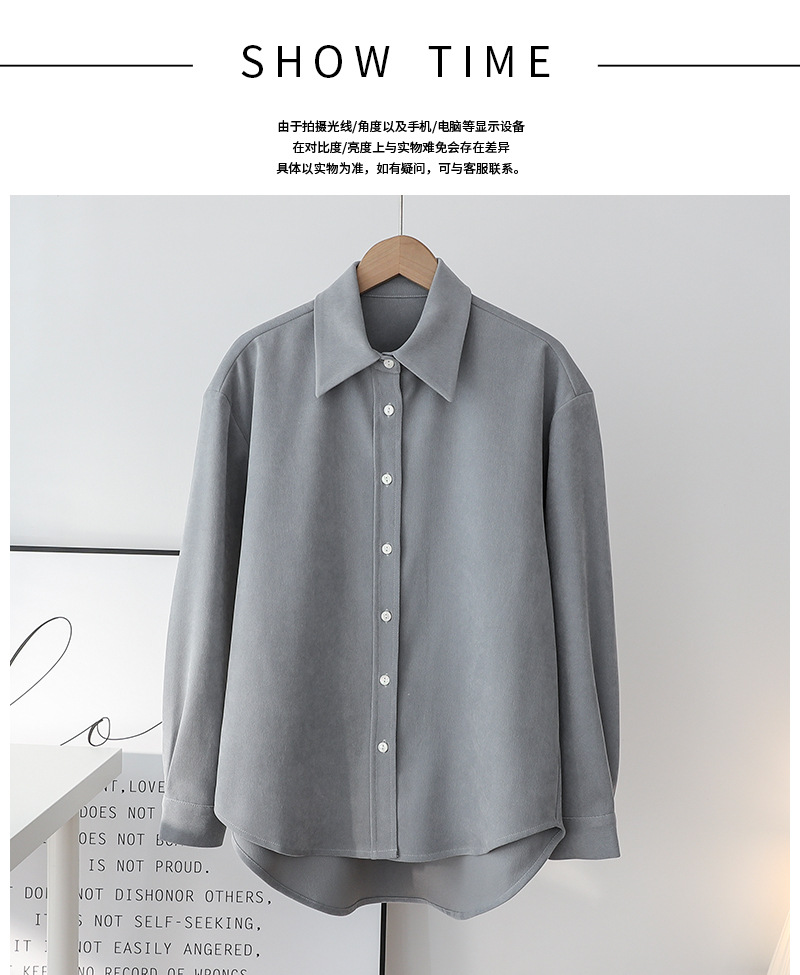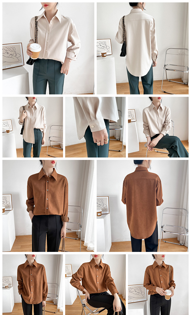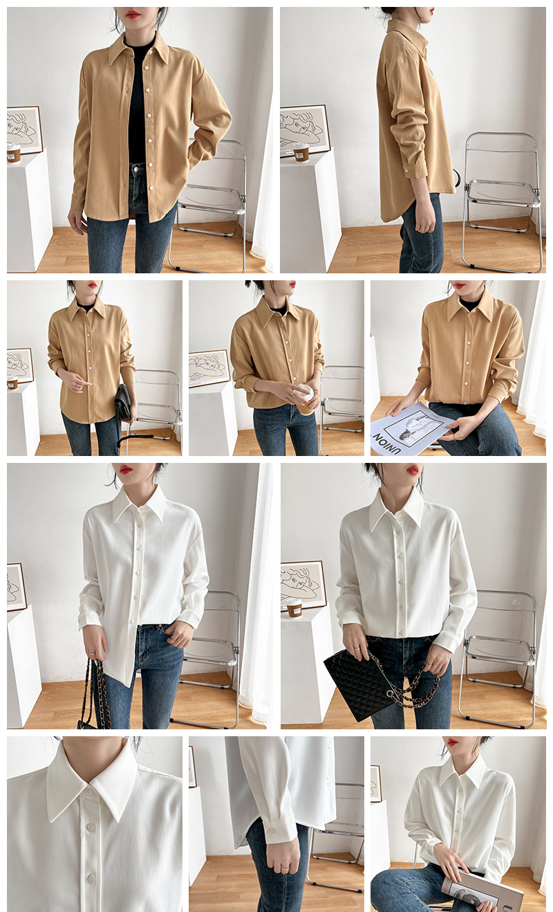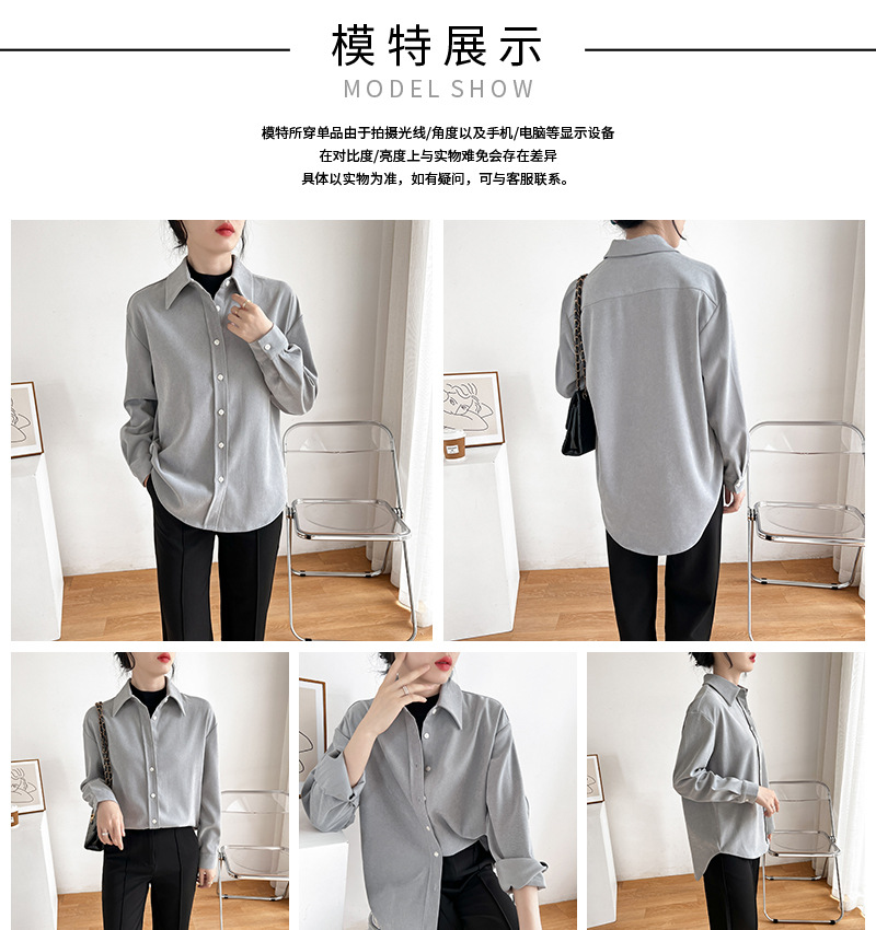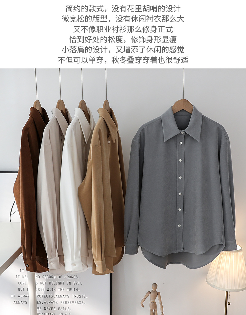 色彩叠穿 款灯芯绒磨毛休闲纯色长袖衬衫女宽松百搭韩版衬衣