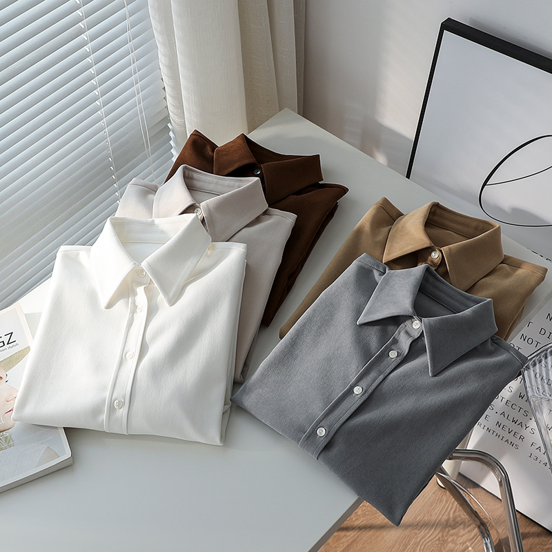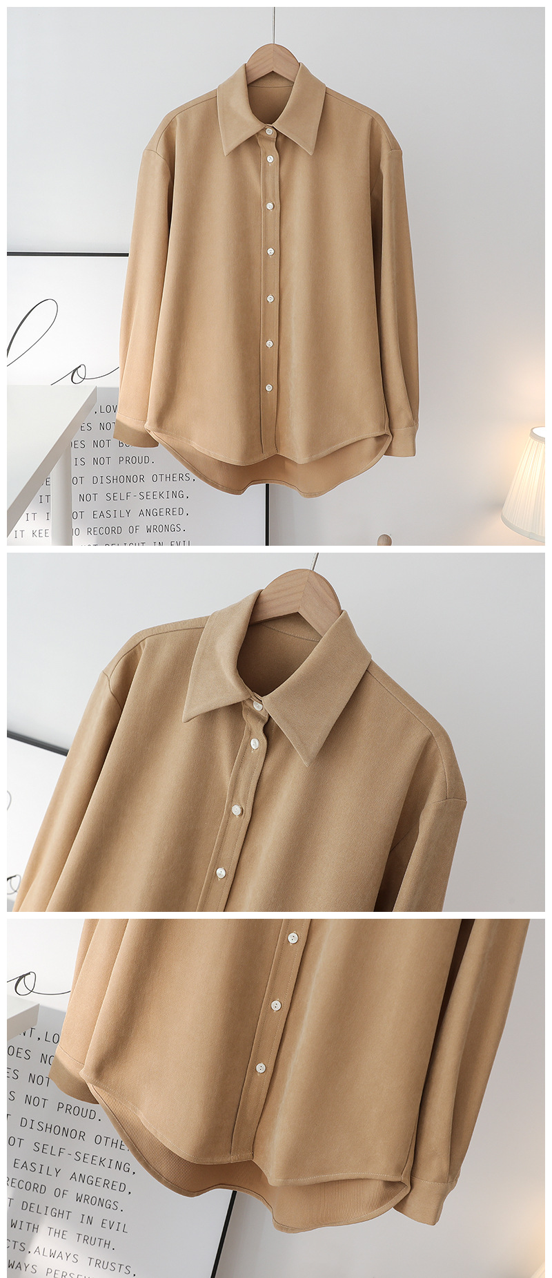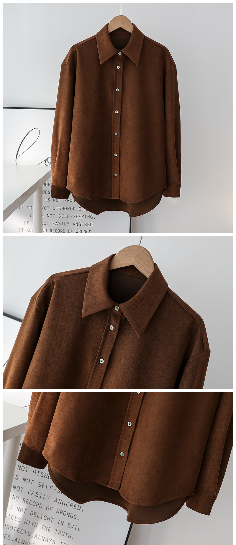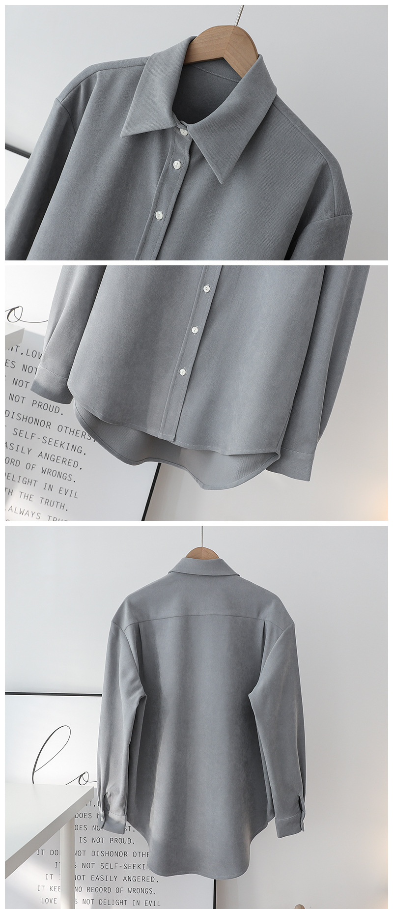 色彩叠穿 款灯芯绒磨毛休闲纯色长袖衬衫女宽松百搭韩版衬衣
