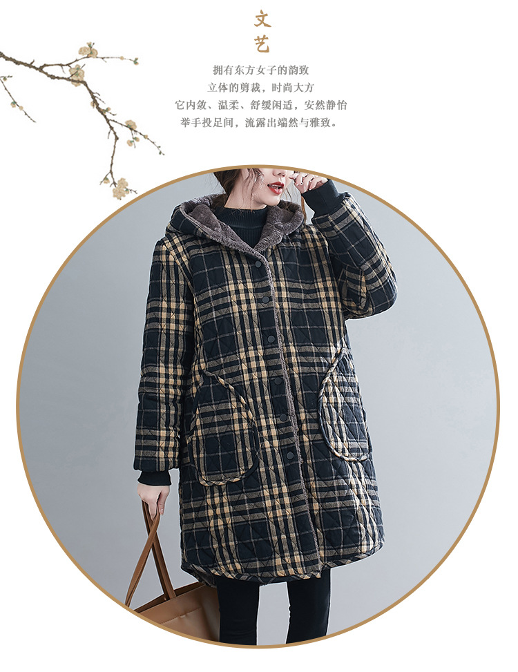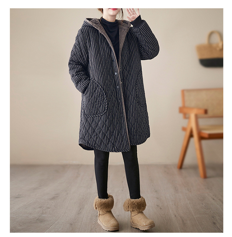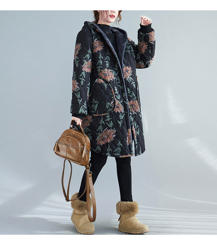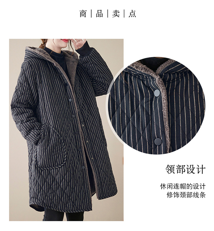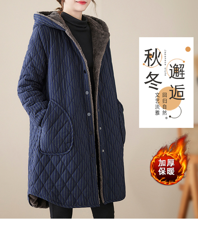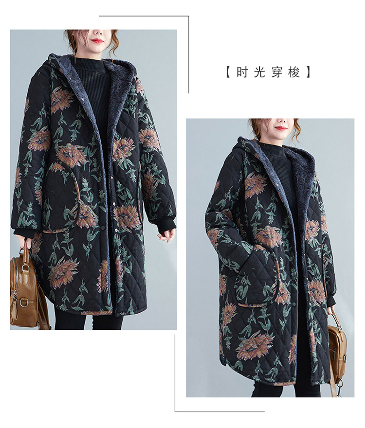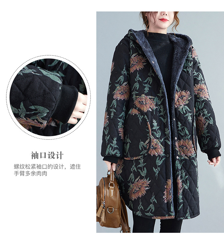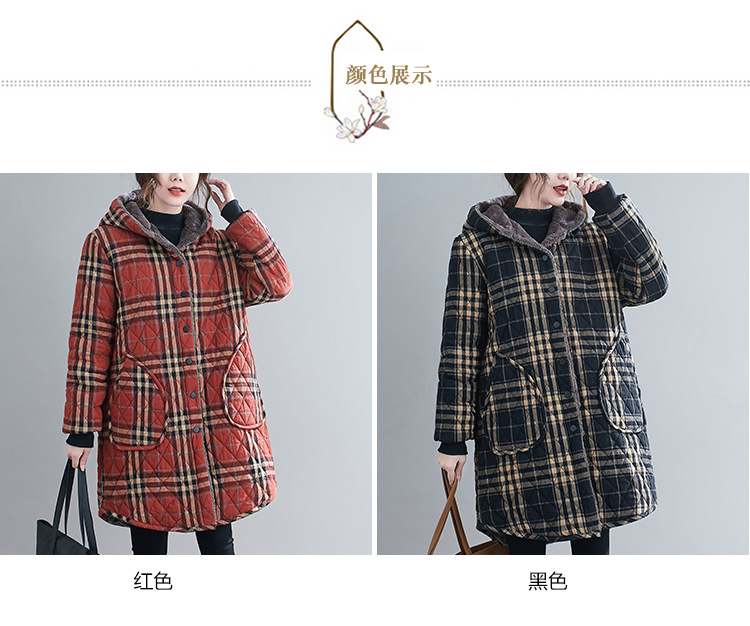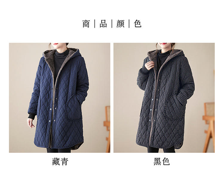 5色入 新款加绒中长款棉衣复古保暖外套宽松连帽棉袄