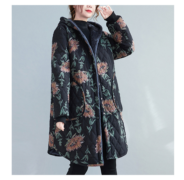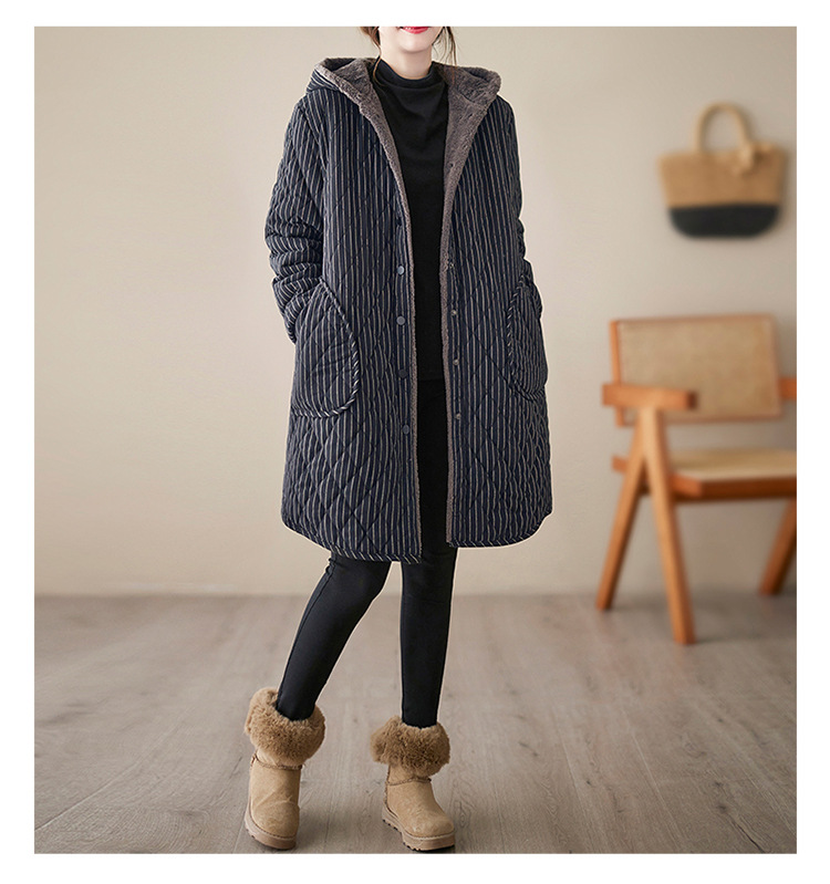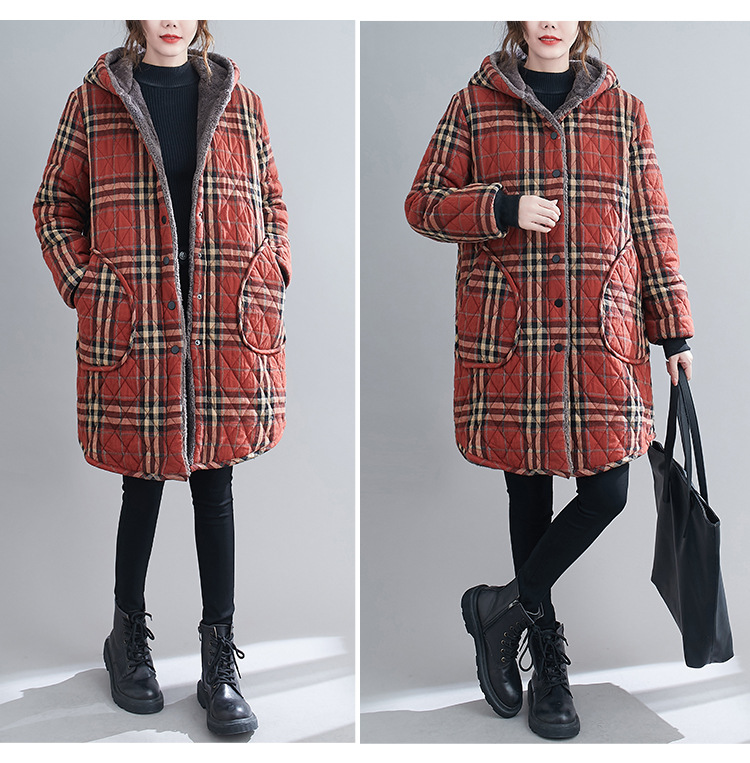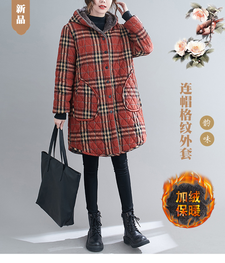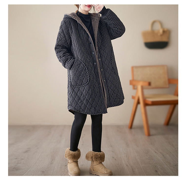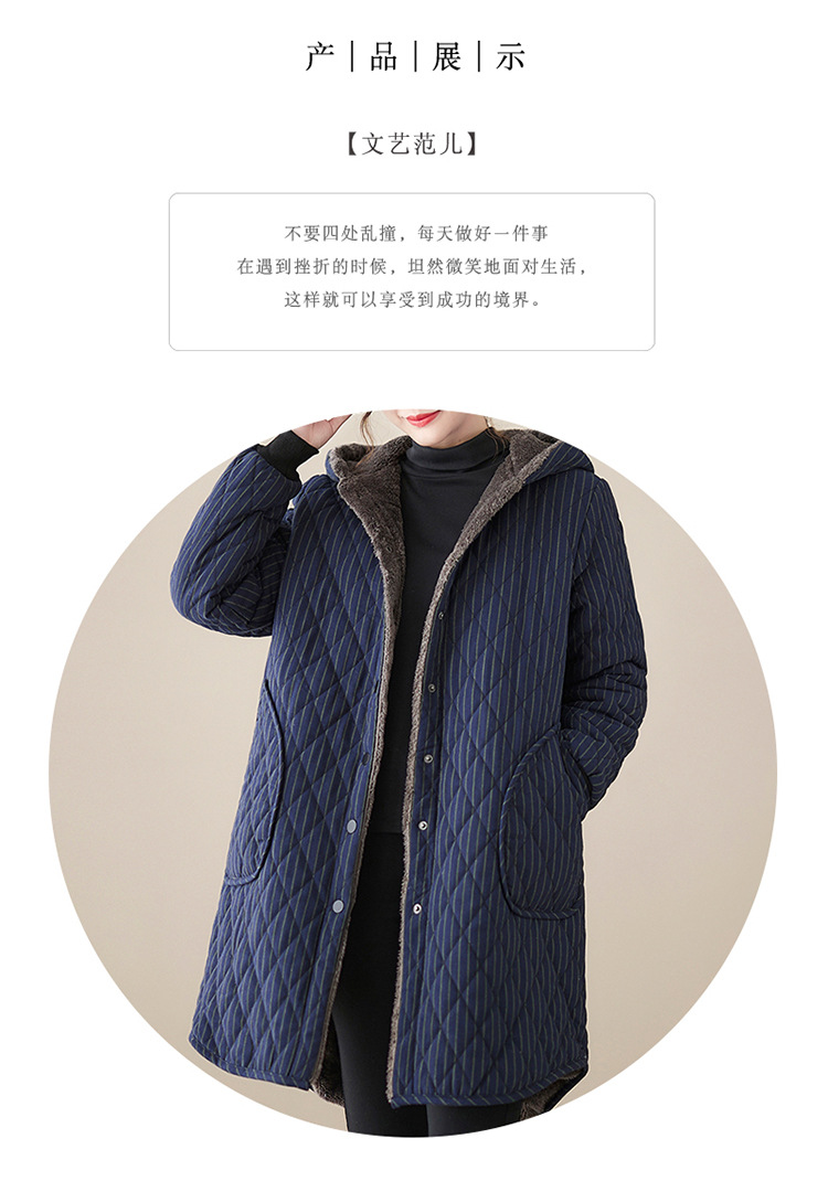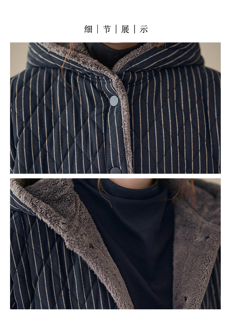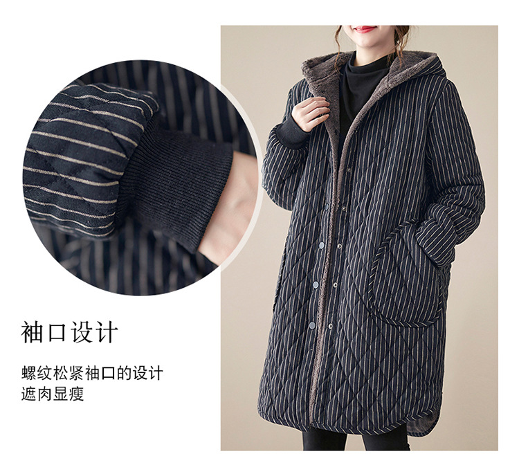 5色入 新款加绒中长款棉衣复古保暖外套宽松连帽棉袄