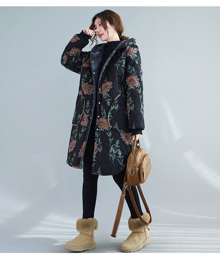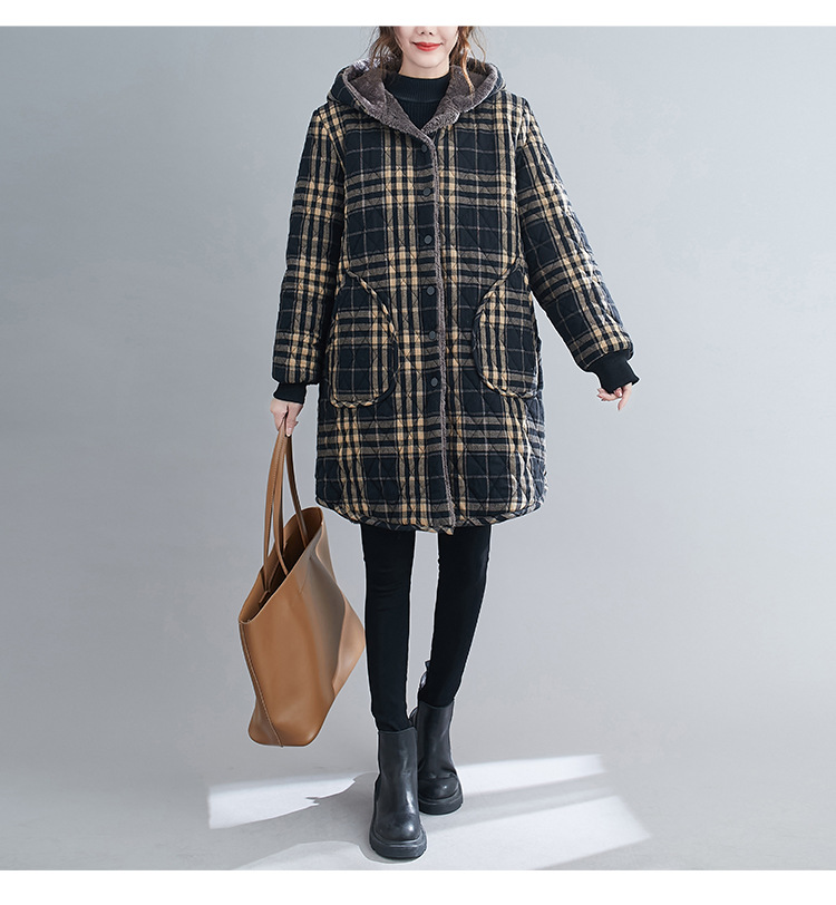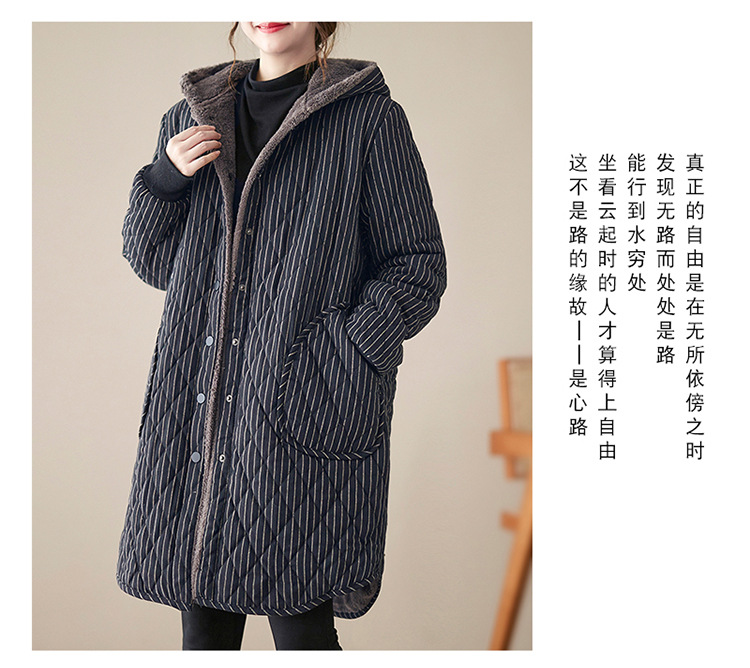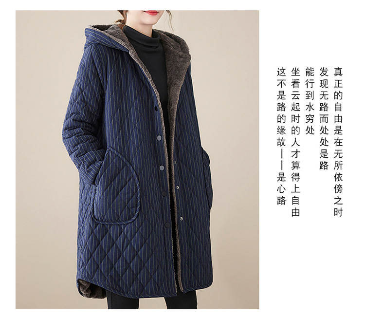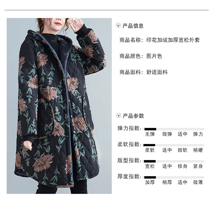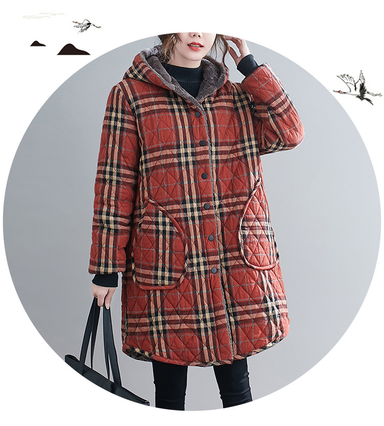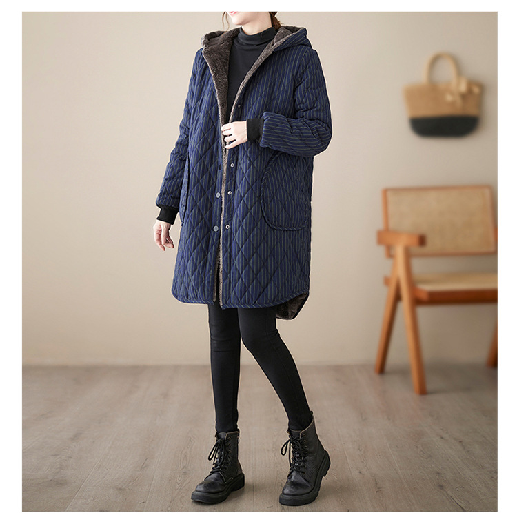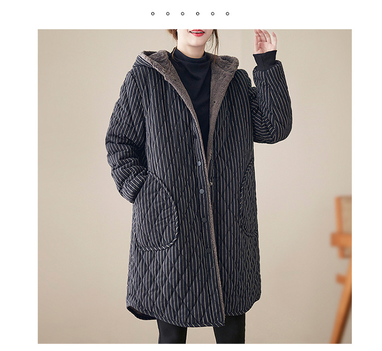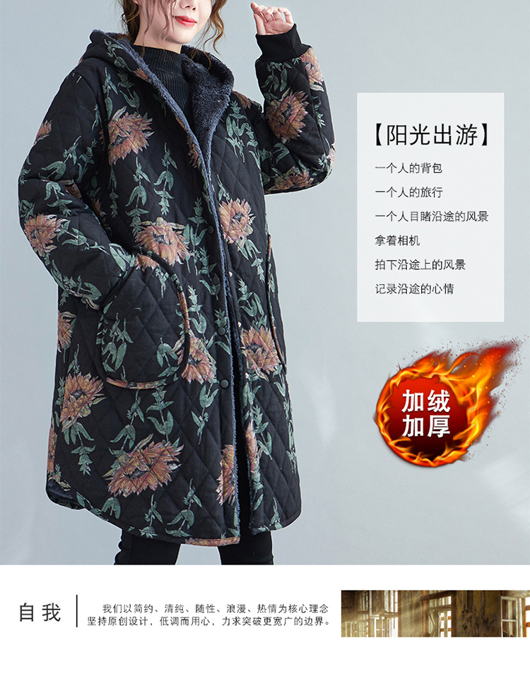 5色入 新款加绒中长款棉衣复古保暖外套宽松连帽棉袄
