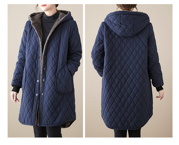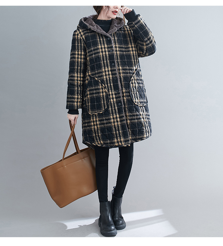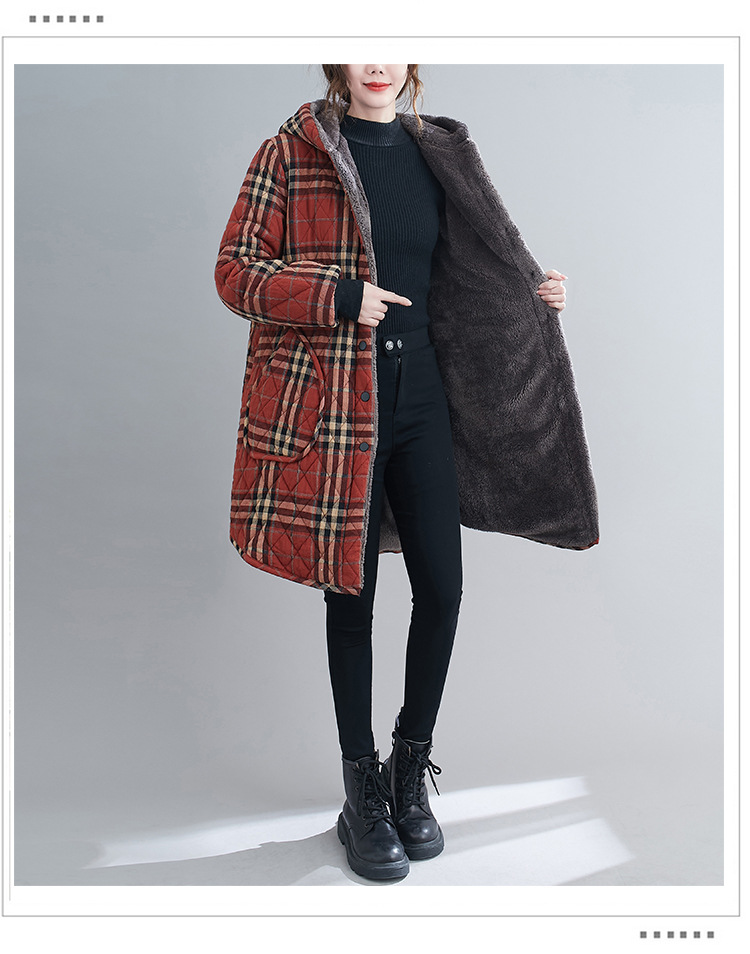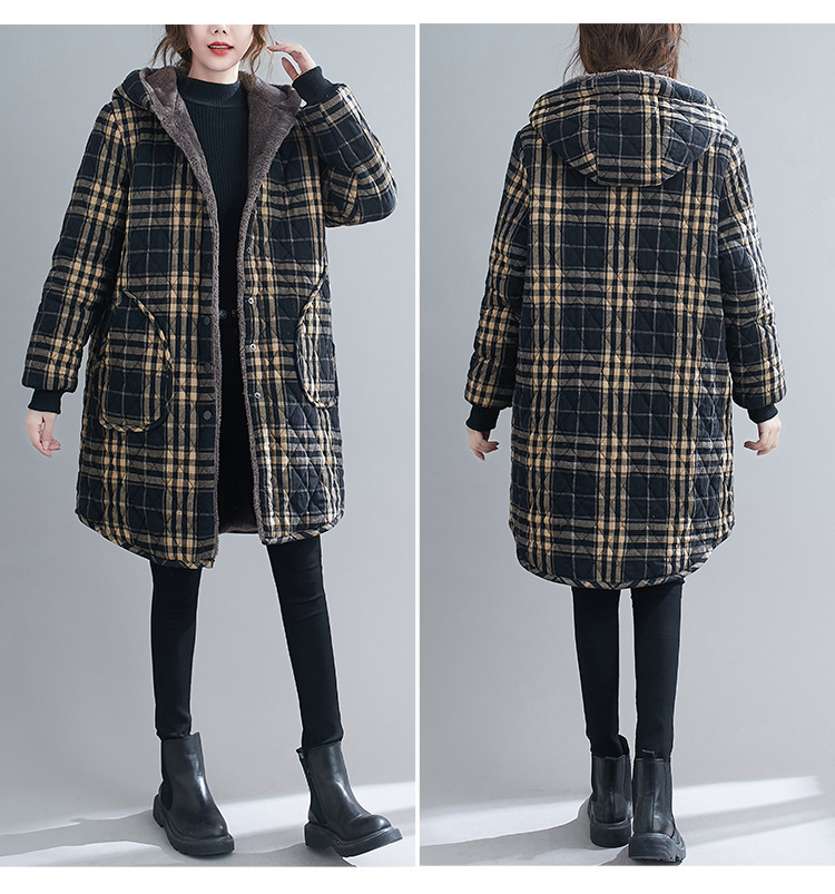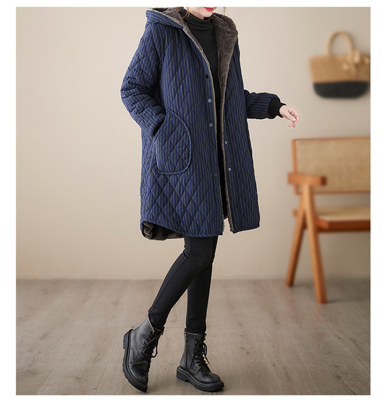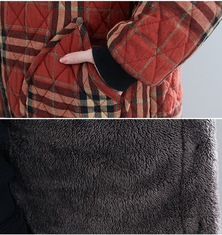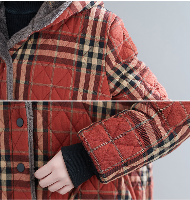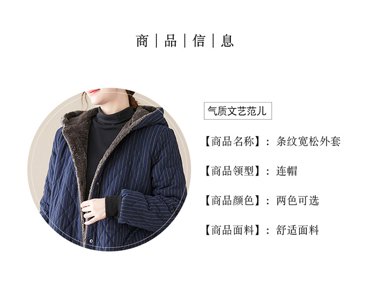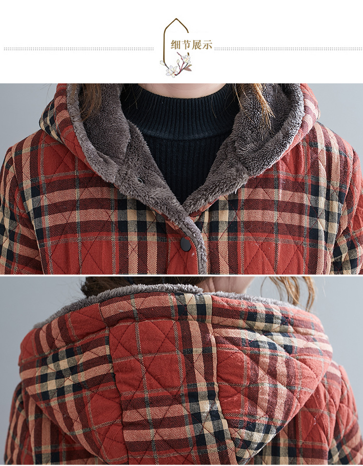 5色入 新款加绒中长款棉衣复古保暖外套宽松连帽棉袄