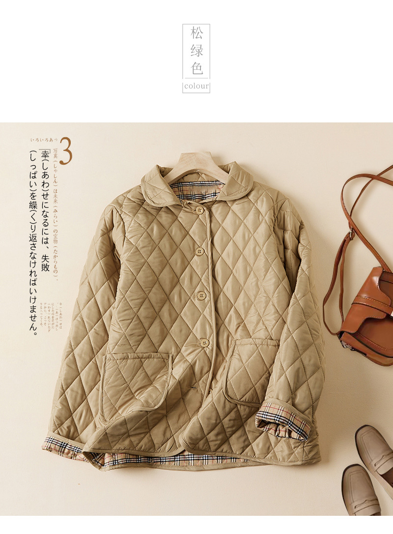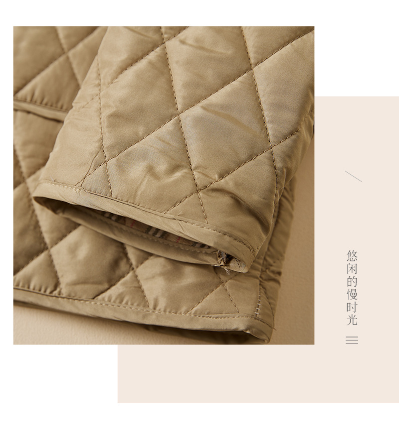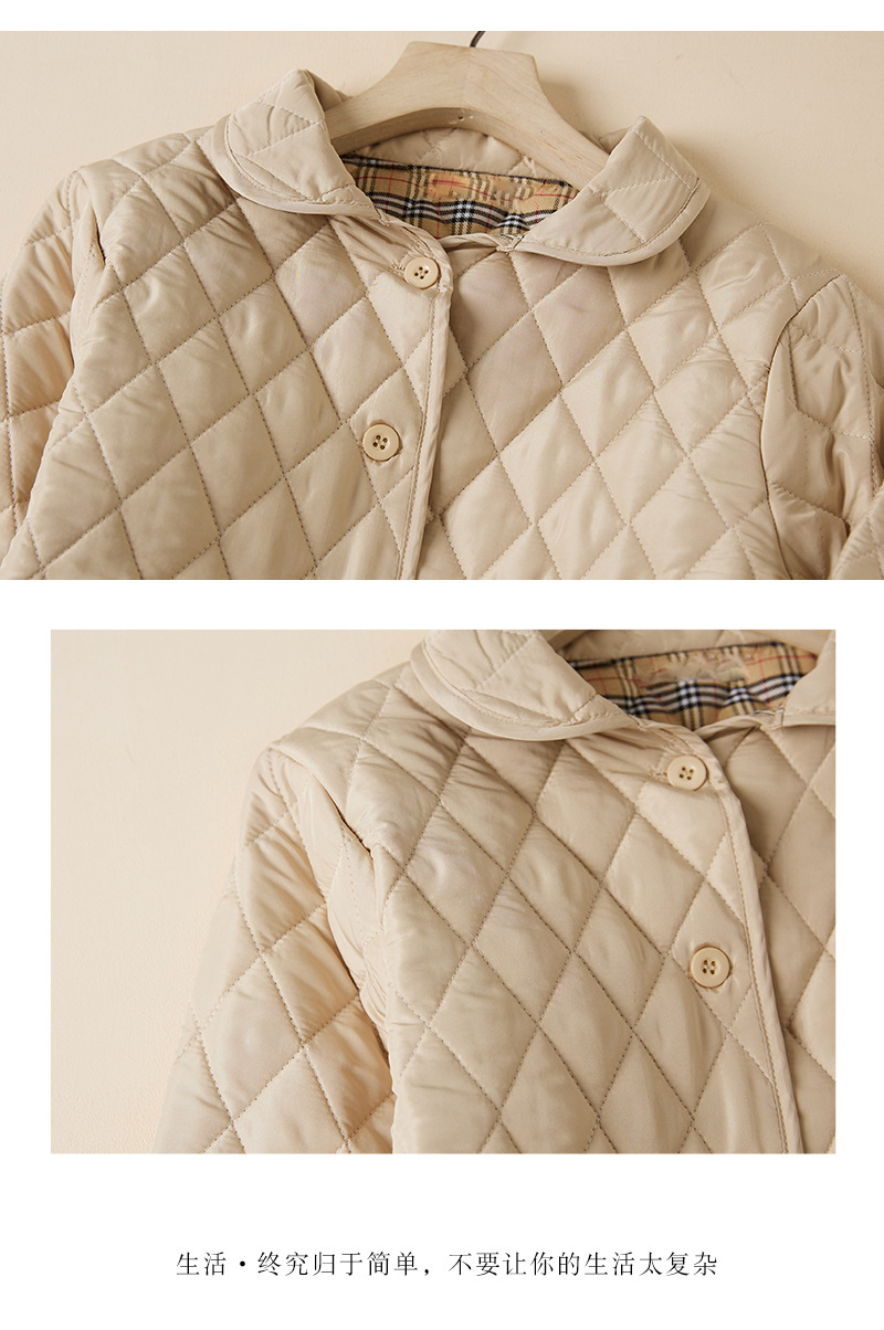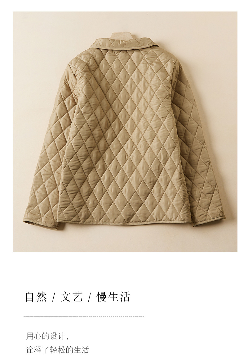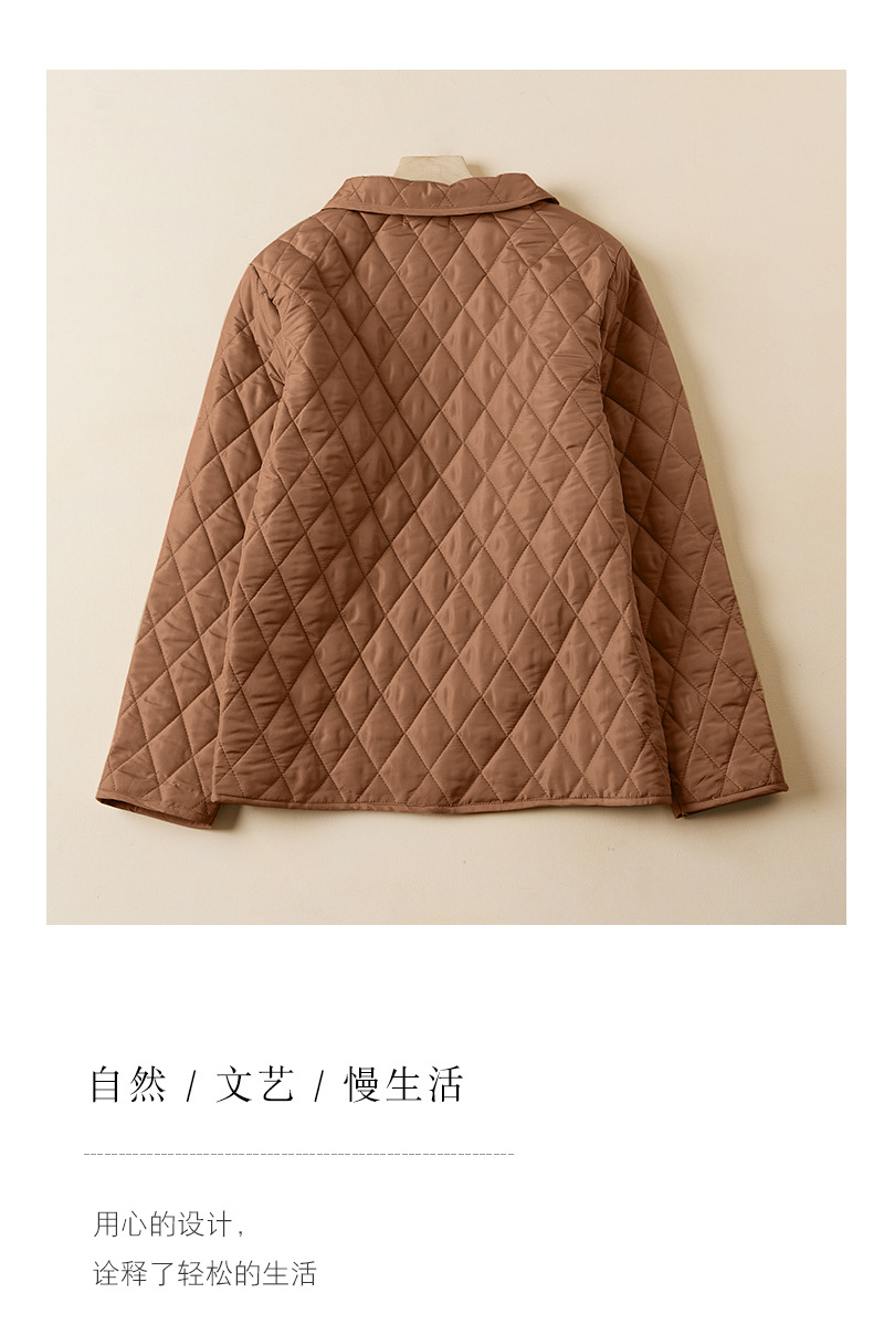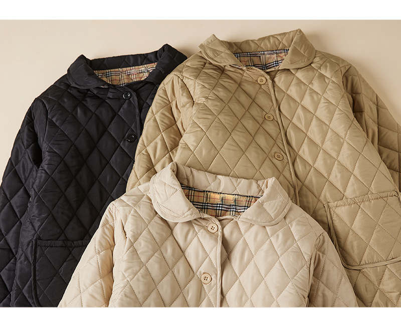 4色入 纯色菱格间棉棉服外套轻薄小棉袄宽松新款夹棉棉衣