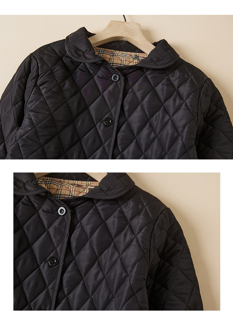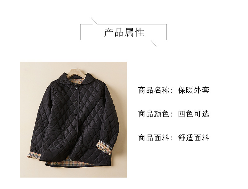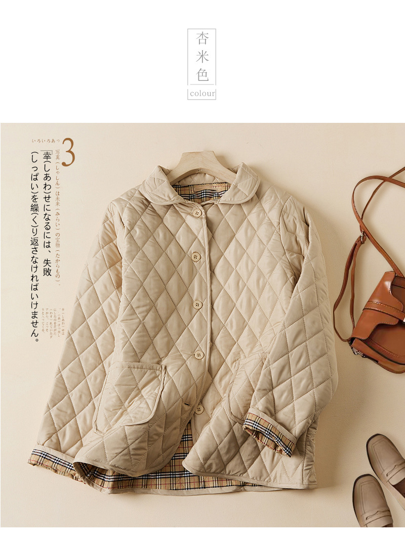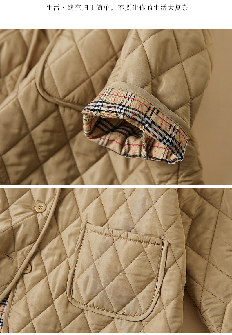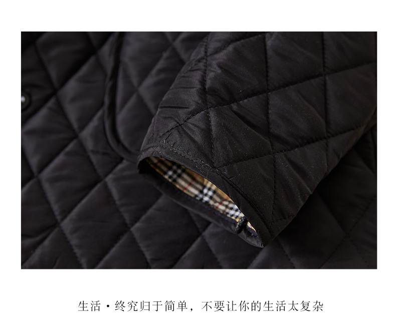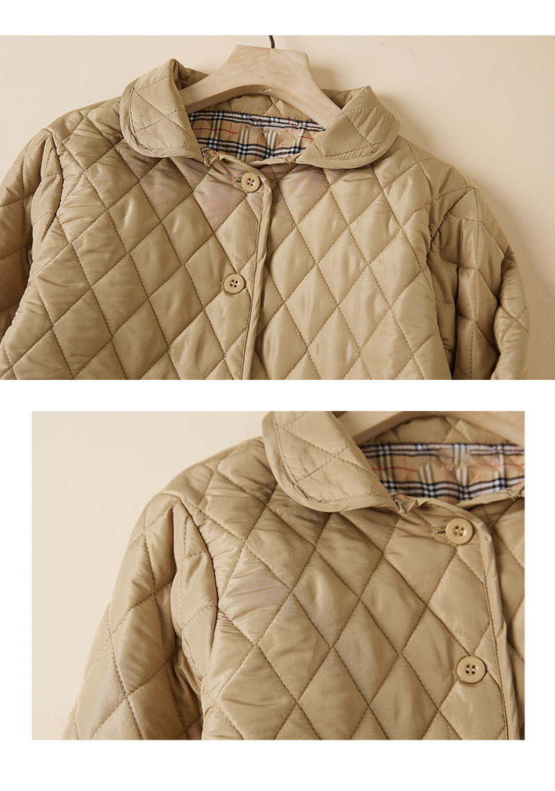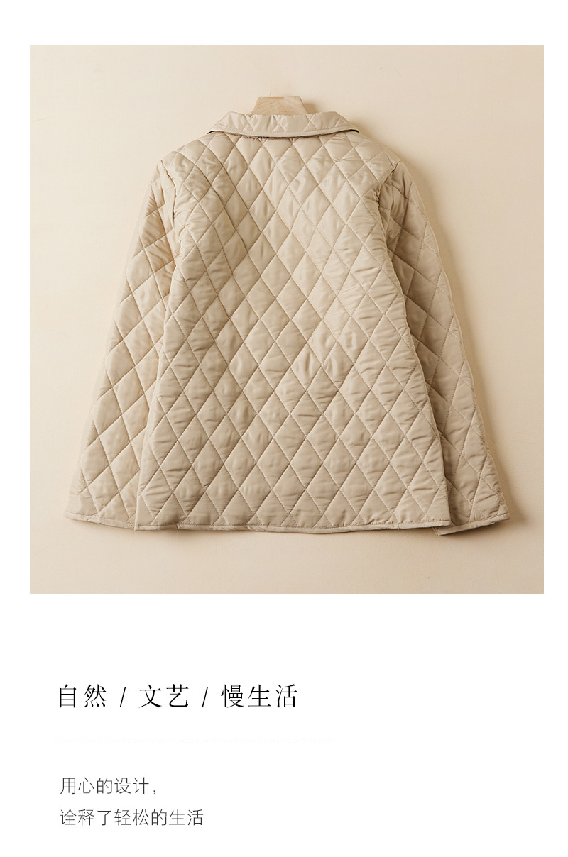 4色入 纯色菱格间棉棉服外套轻薄小棉袄宽松新款夹棉棉衣
