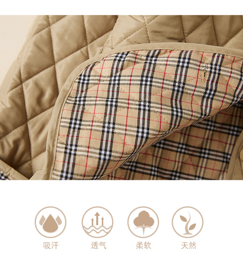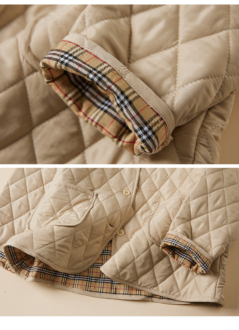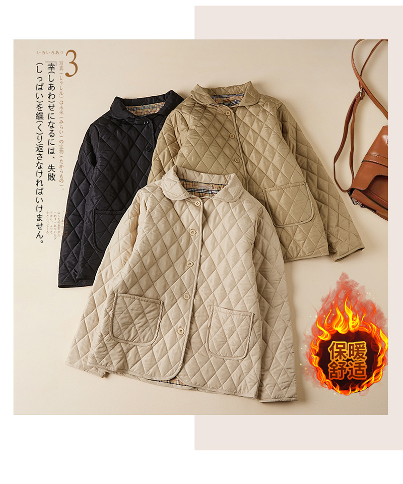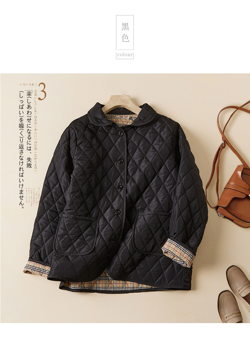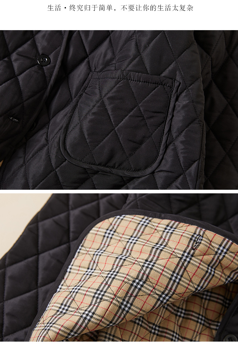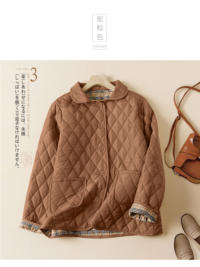 4色入 纯色菱格间棉棉服外套轻薄小棉袄宽松新款夹棉棉衣
