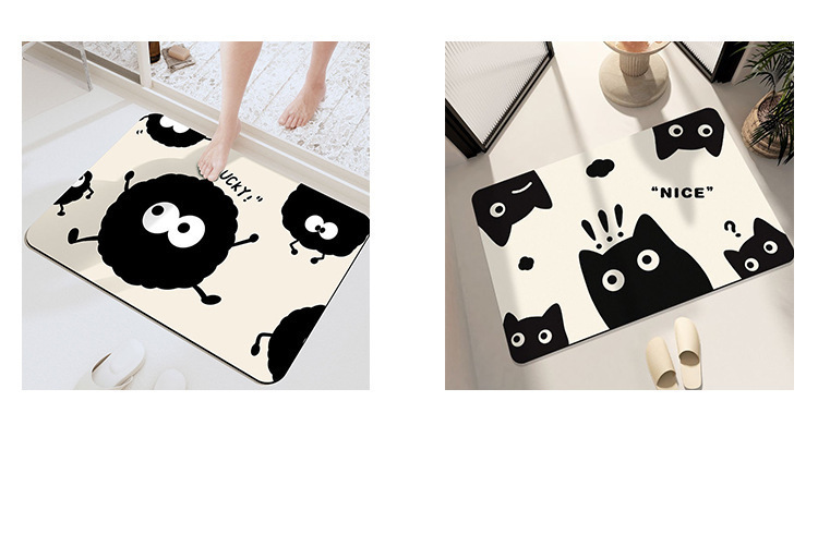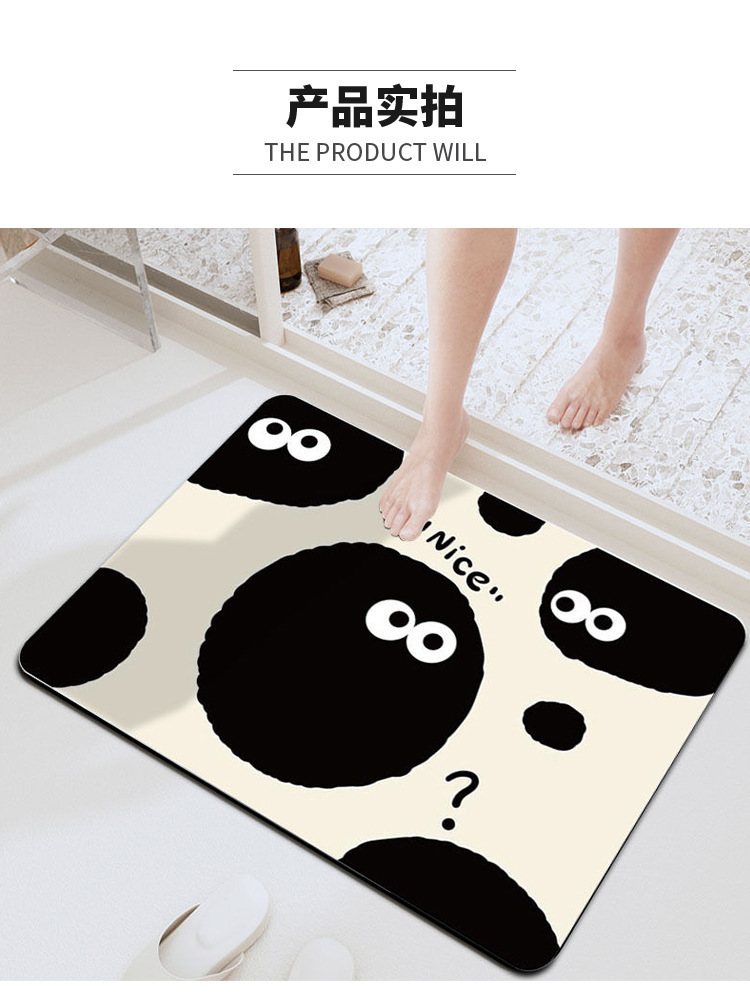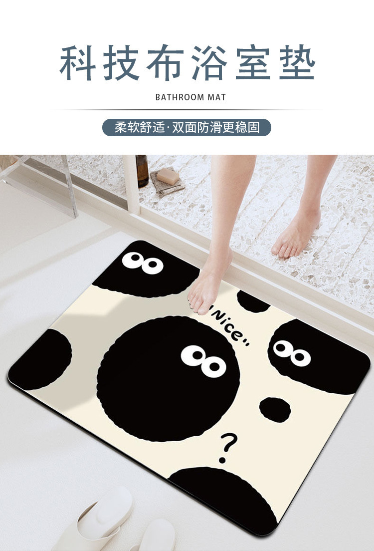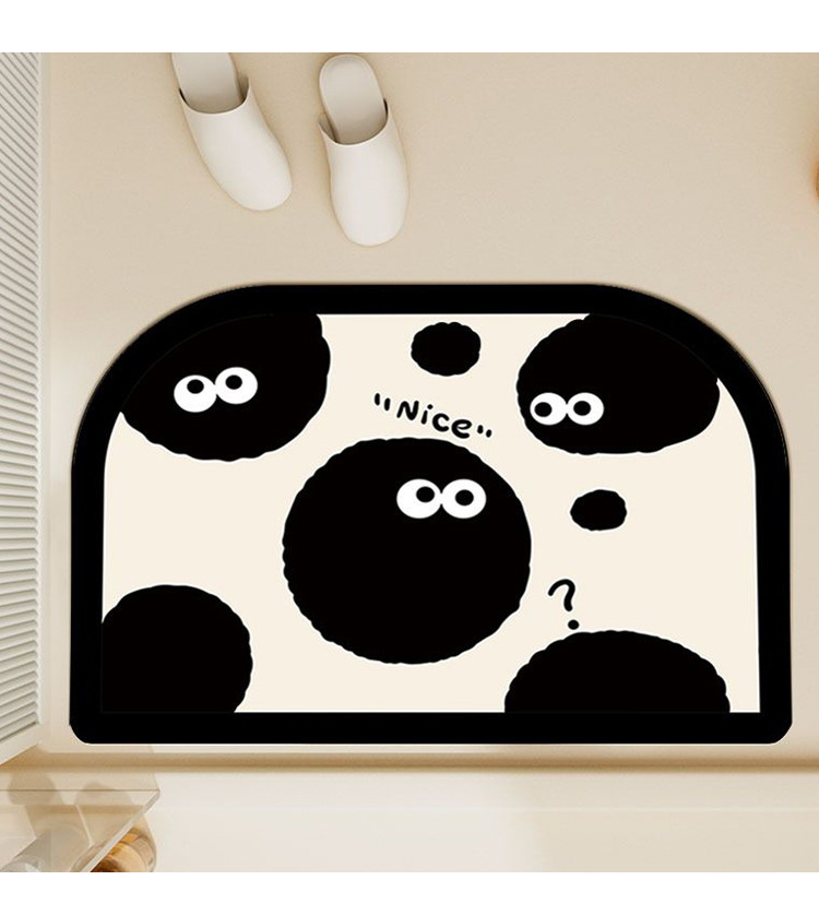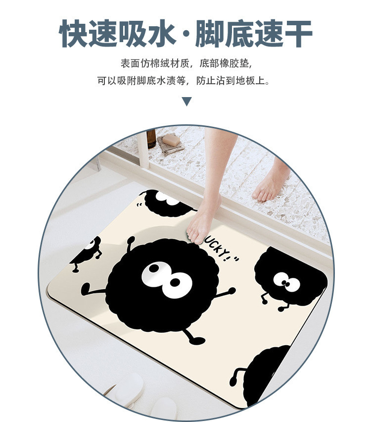 卡通黑煤球硅藻泥浴室地垫家用卫生间厕所门口防滑吸水脚垫入门垫