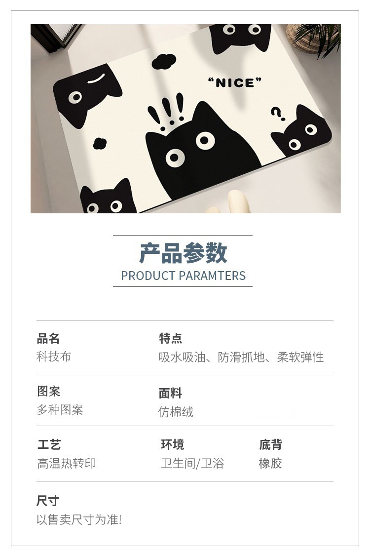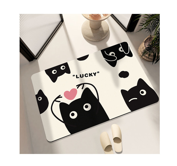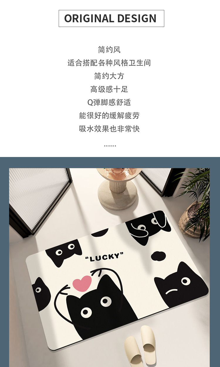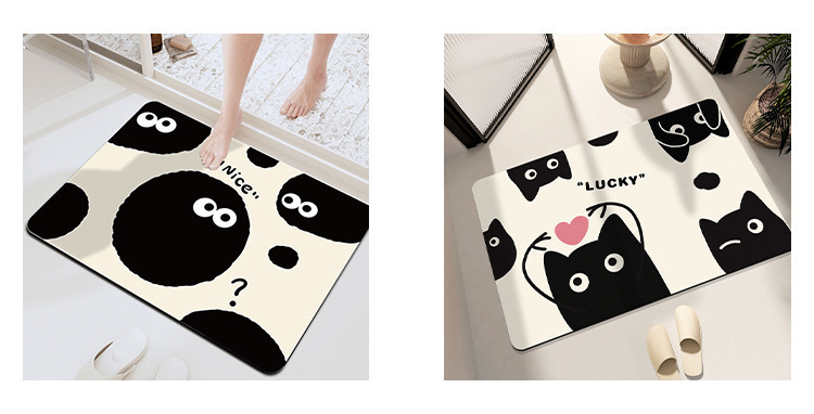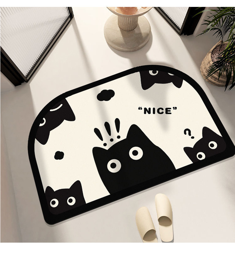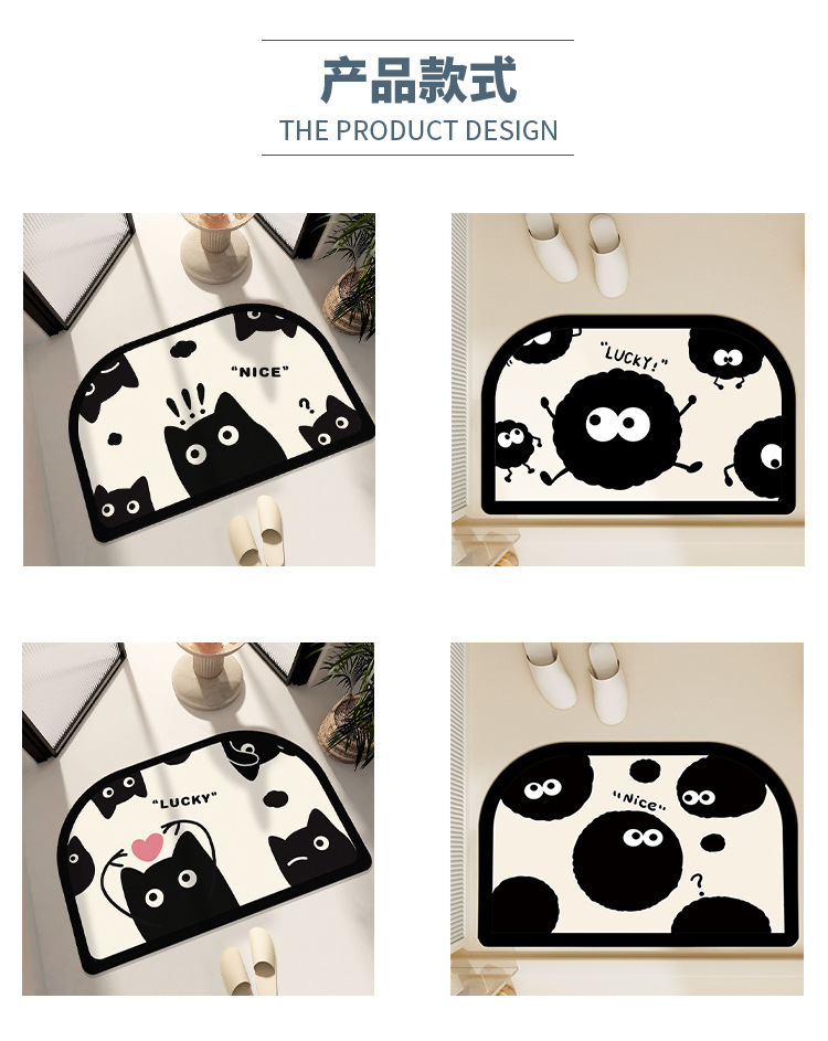 卡通黑煤球硅藻泥浴室地垫家用卫生间厕所门口防滑吸水脚垫入门垫
