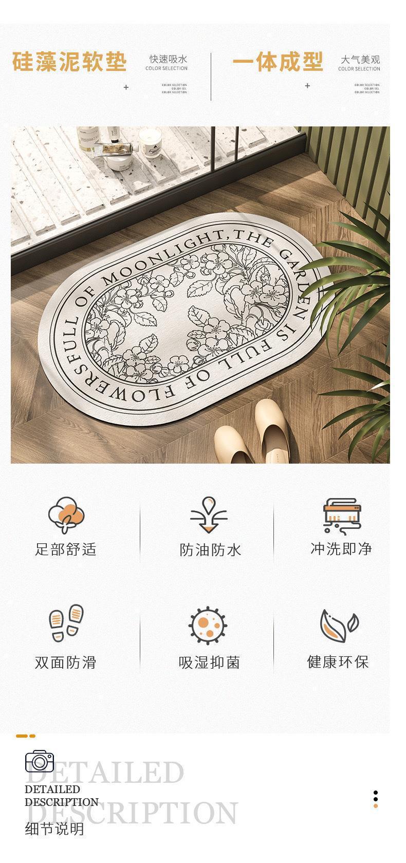 ins风硅藻泥地垫洗手间门口防滑脚垫家用浴室吸水进门软垫可代发
