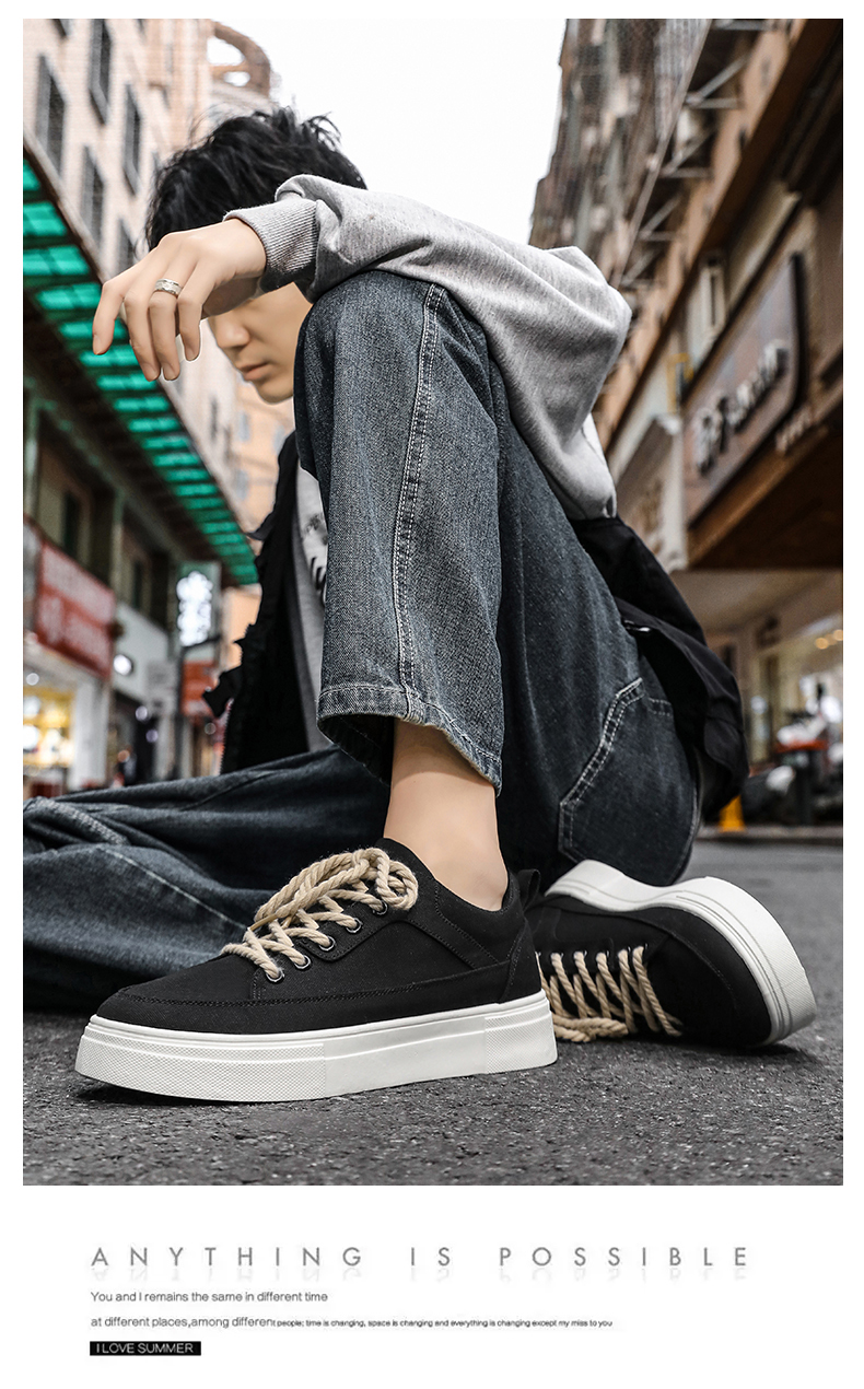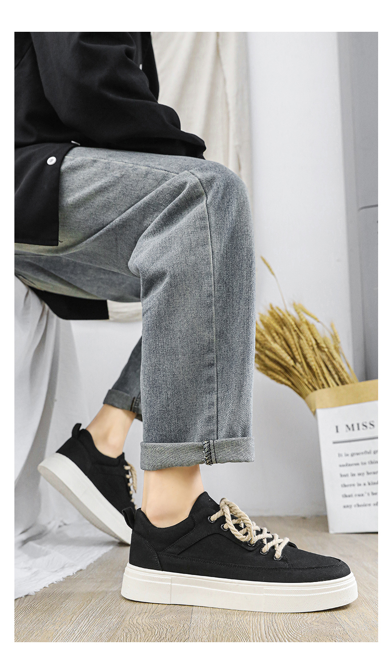 帆布男鞋新款小众搭配休闲板鞋学生软底运动黑色布鞋潮鞋