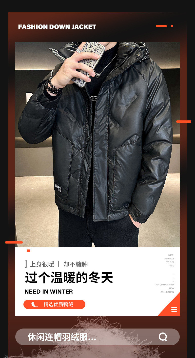 暗纹羽绒服男士鸭绒新款加厚休闲男装保暖男装外套夹克羽绒服