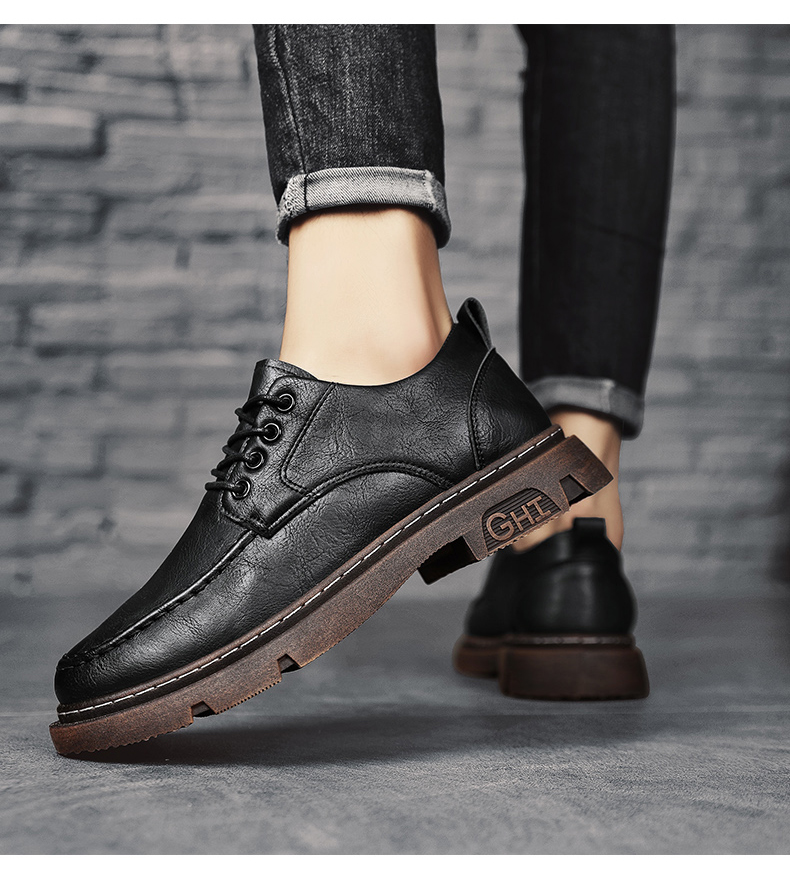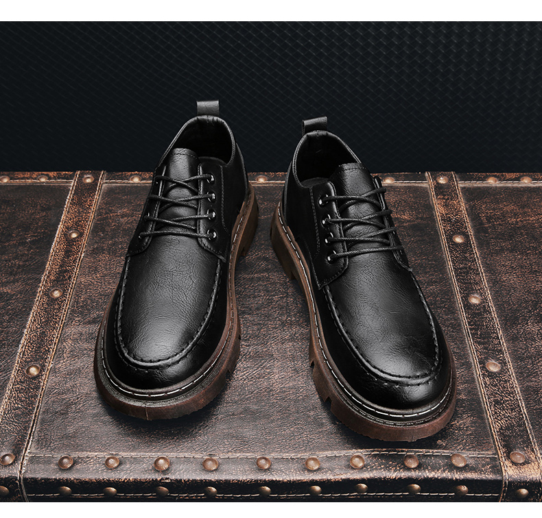 男鞋英伦商务正装休闲皮鞋男士黑色新郎结婚软底增高大头潮鞋