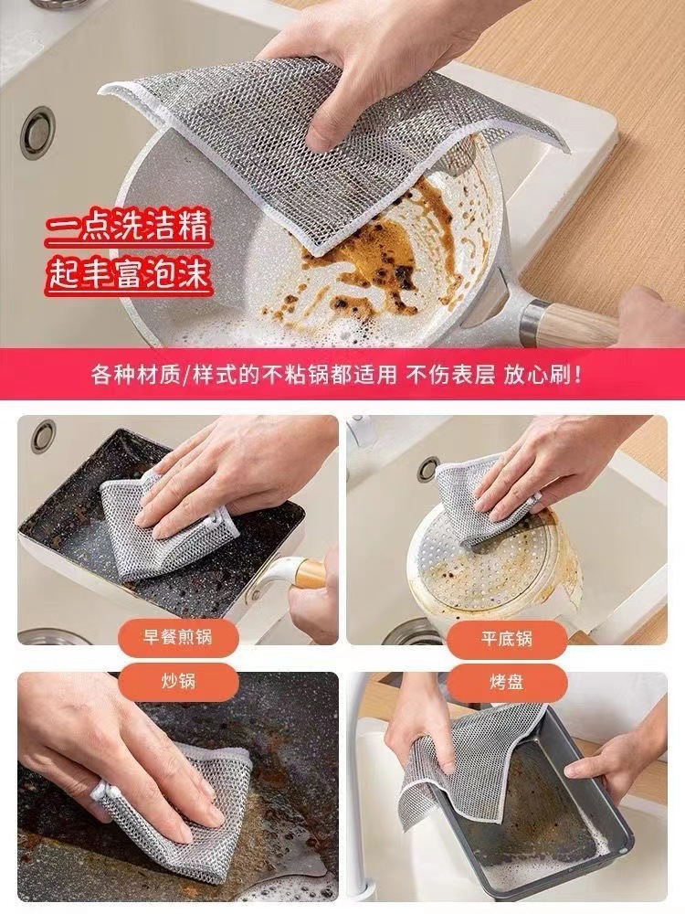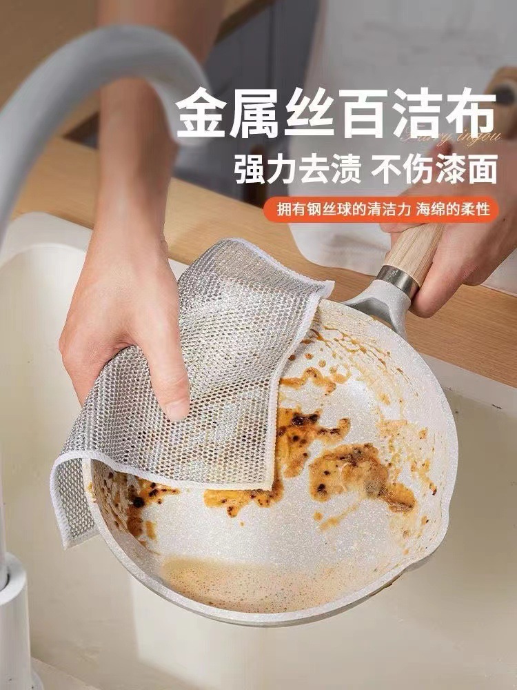 钢丝洗碗布清洁金属抹布网格不沾油银丝抹布厨房洗碗洗锅清洗手套