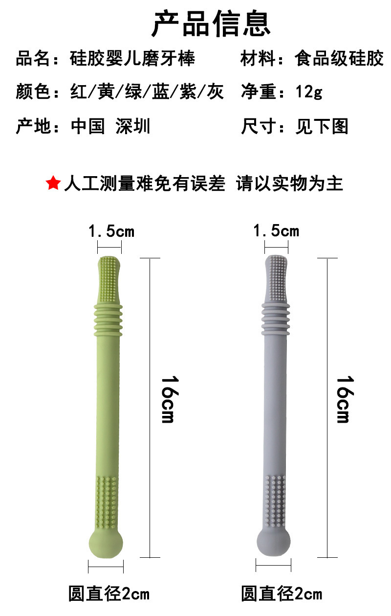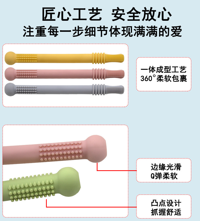宝宝牙胶空心管磨牙棒可水煮食品级硅胶防吃手神器玩具婴儿咬胶乐