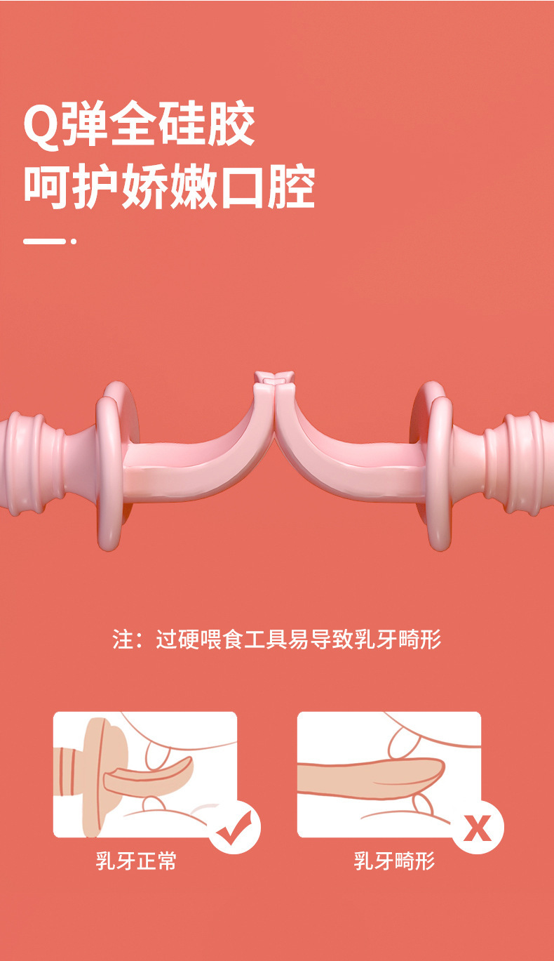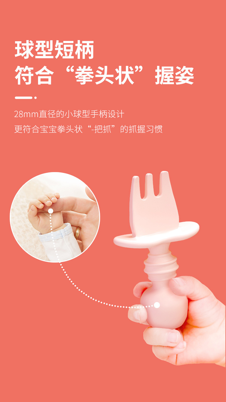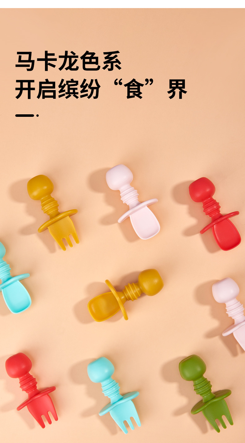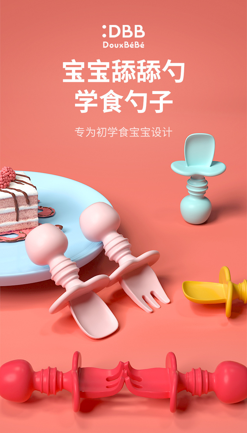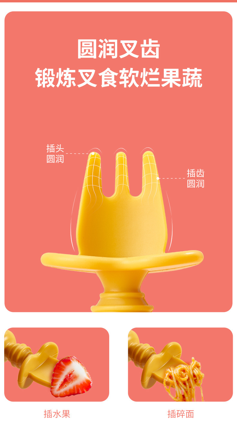 亚马逊跨境宝宝辅食叉勺婴幼儿童食品级硅胶学食叉勺舔舔勺