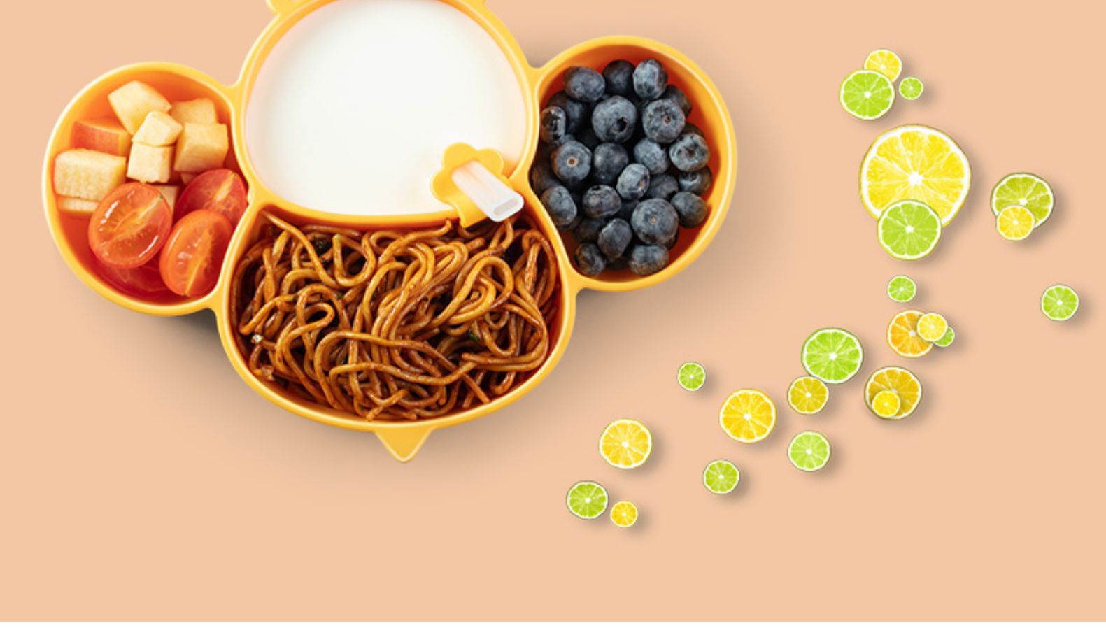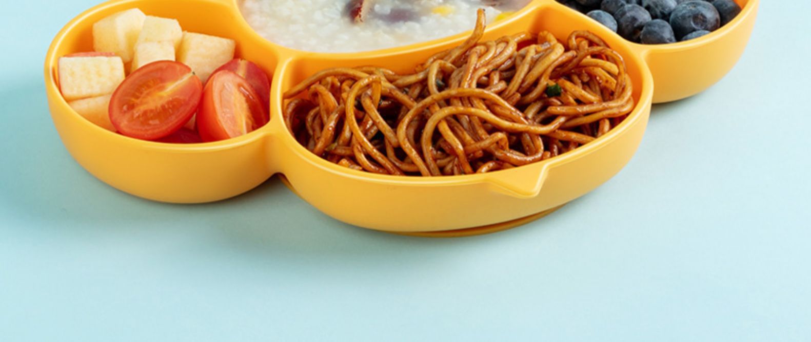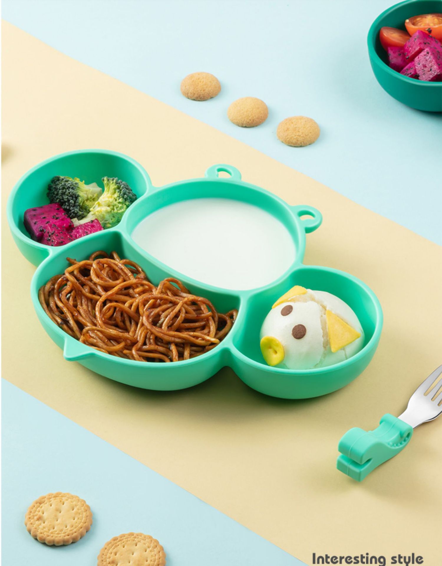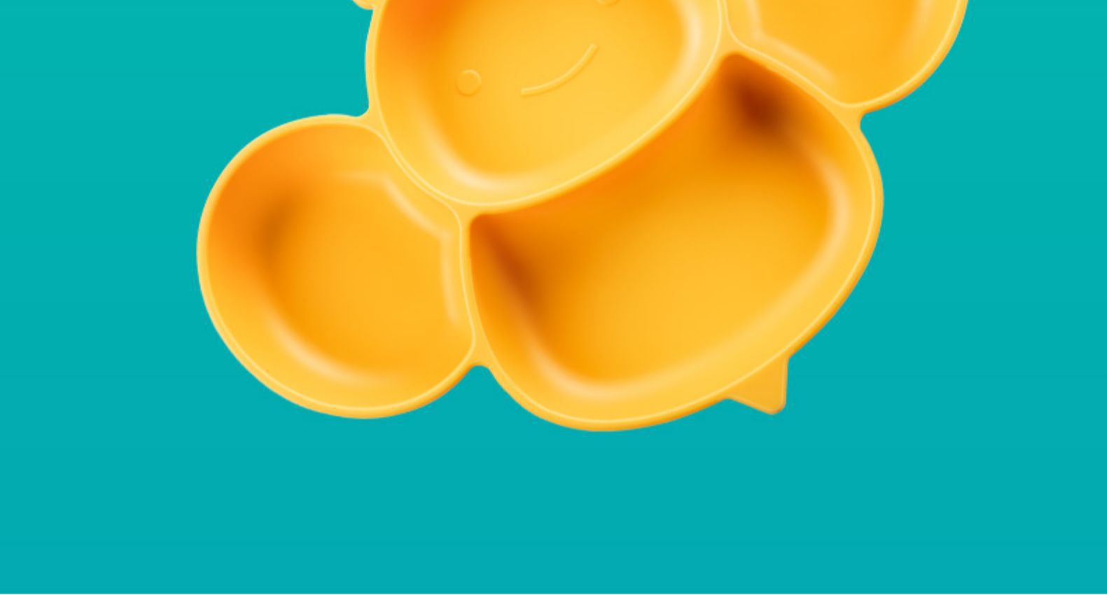 跨境宝宝卡通萌趣硅胶大吸盘餐盘 婴儿硅胶吃饭餐具小蜜蜂餐盘